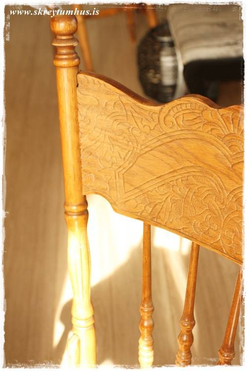 En já…stólarnir eru gordjöss og pældu í allri vinnunni sem hefur farið í þennan útskurð!! Algjör listamaður þarna á ferð þannig að stólarnir passa sko vel inni á þínu heimili 🙂 Hlakka líka til að sjá hvað þú gerir við borðið!