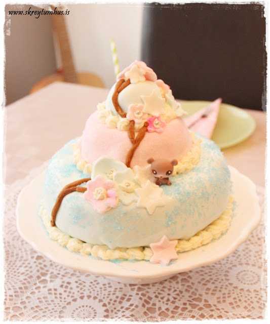 … síðan setti ég smjörkrem yfir alla kökuna og þá var bara eftir að útbúa smá fondant.
