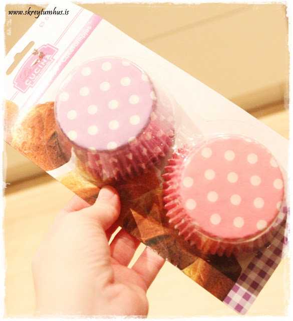 ..síðan í Bónus duttu síðan þessi bollakökuform ofan í körfuna, og doppótt, eins og ég sagði: ótrúlegt hvað það var allt doppótt sem að ég sá 🙂  199kr pakkinn.