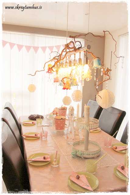 …og það er nú eitt af því skemmtilega við allt svona afmælisferli.  Daman mín var alveg sallaróleg yfir þessu og gerði svo sem engar kröfur, talaði bara um að mamma kynni að skreyta og gera kósý, og lét það nægja sér! Pælið í því 🙂