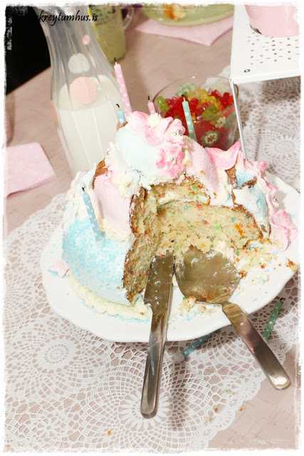 …að sjálfsögðu var afmælisterta….