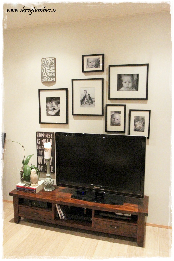 …og þar sem farið var að alla á hlut sonarins í myndafjölda, þá þurfti að bæta við. Plús að mér finnst fallegt að sjá fleiri myndir í kringum sjónvarpið því að þá er það ekki bara einn stór svartur kassi (hægt er að smella hér til þess að sjá alls konar myndaveggi)…