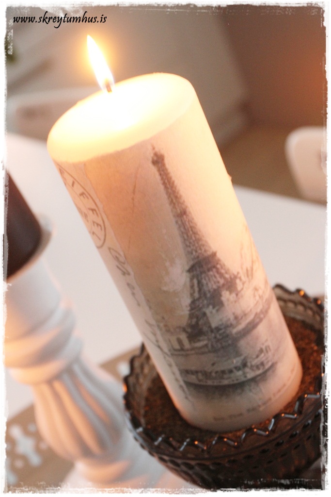 Jú jú Modge podge brennur ( hef reynslu) en kertalímið úr Föndru er ok….flottar myndir t.d á The Graphics Fairy og svo auðvitað pinterest.com