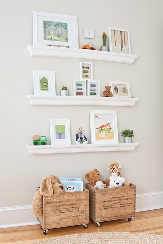 …svo fallegar hillur og hver elskar ekki dótakassana á hjólum?