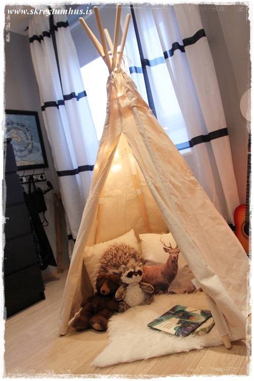 …þetta hefur því alltaf verið mér ofarlega í huga.  Þegar ég sá síðan indjánatjöldin hjá versluninni I am happy (smella hér) þá vissi ég að leitinni var lokið…