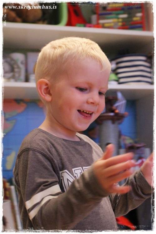 …og hann varð svo kátur að það var bara klappað út í eitt (þessi spékoppur í kinninni bræðir mig svo)…