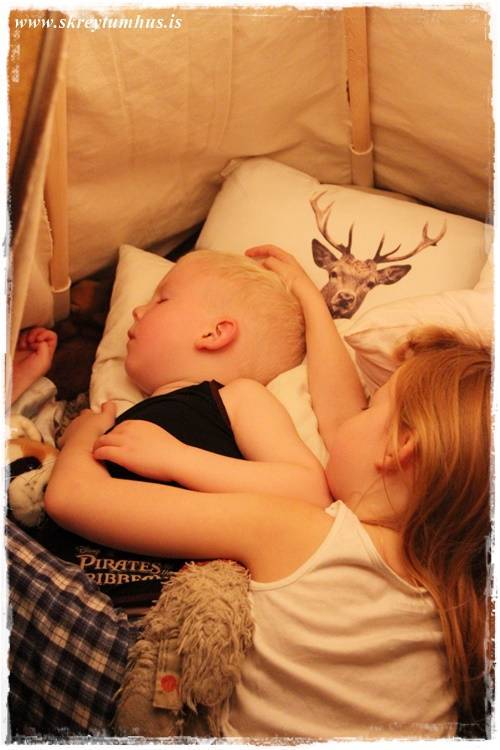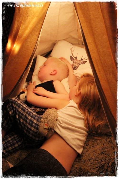 Hjartað mitt springur að sjá þau þarna sofandi þessi elsku börn, fallegra verður þetta ekki… sofandi börn og dásamlegt kósýtjald 🙂