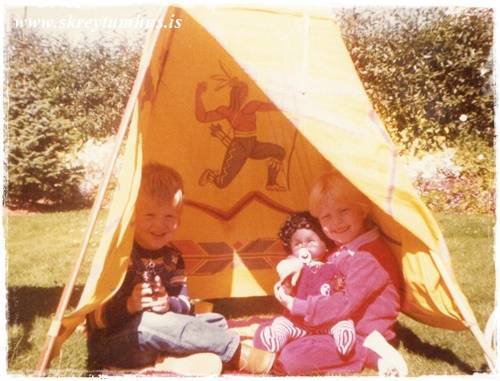 …en Dossa litla átti líka svona fínt indjánatjald, eins og sést þarna á bakvið!