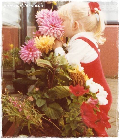 …hún Dossa litla lærði fljótt að meta fallega hluti, og gaf sér tíma til þess að þefa af blómunum…