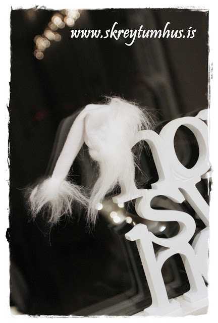 Jújú, hún var búin að sauma svona líka sæta jólasveinahúfu á HomeSweetHome-stafina mína…