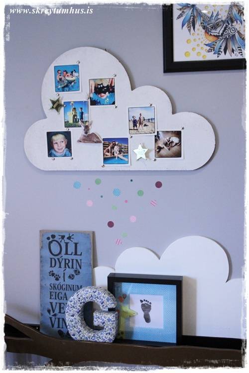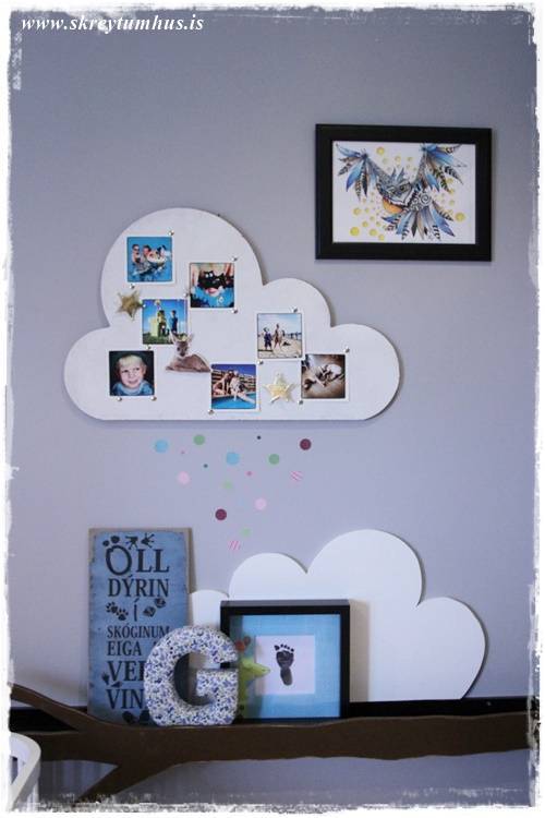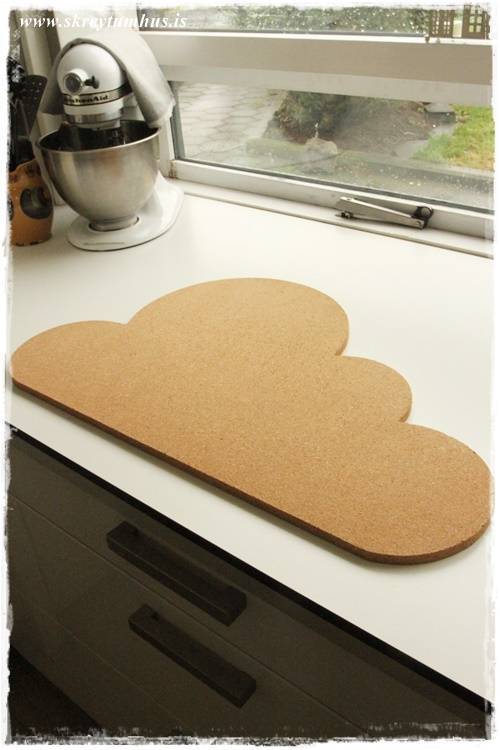 …júbb. auðvitað féll ég fyrir korktöfluskýjinu. Það er kannski ekkert skrítið, enda harmonerar það algjörlega við heimasmíðuðu Ribba-skýin sem eru inni hjá litla manninum (sjá hér)…