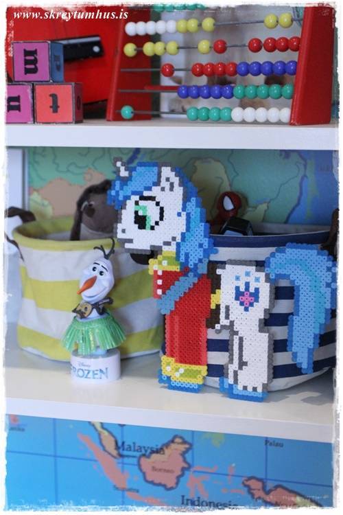 …en þetta er skemmtilegt að vera með svona korktöflur því að það er svo auðvelt að breyta á þeim, og festa á þær teikningar eða eitthvað af öllum þessum smámiðum sem litli maðurinn virðist alltaf vera að ramba um með…