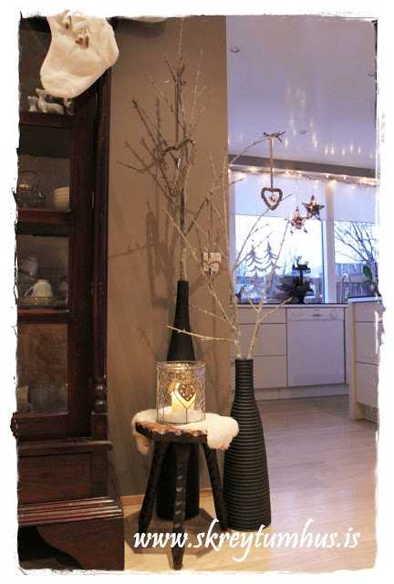 …greinarnar sem eru í stóru vösunum eru frá Pottery Barn, og þetta eru sko hávetrargreinarnar (því að ég er klikkhaus sem á sumargreinar í vasana, haustgreinar og svo vetrargreinar 😉