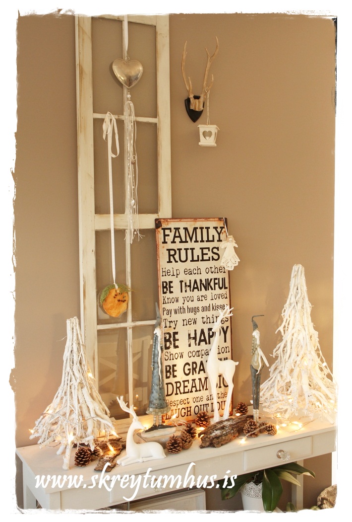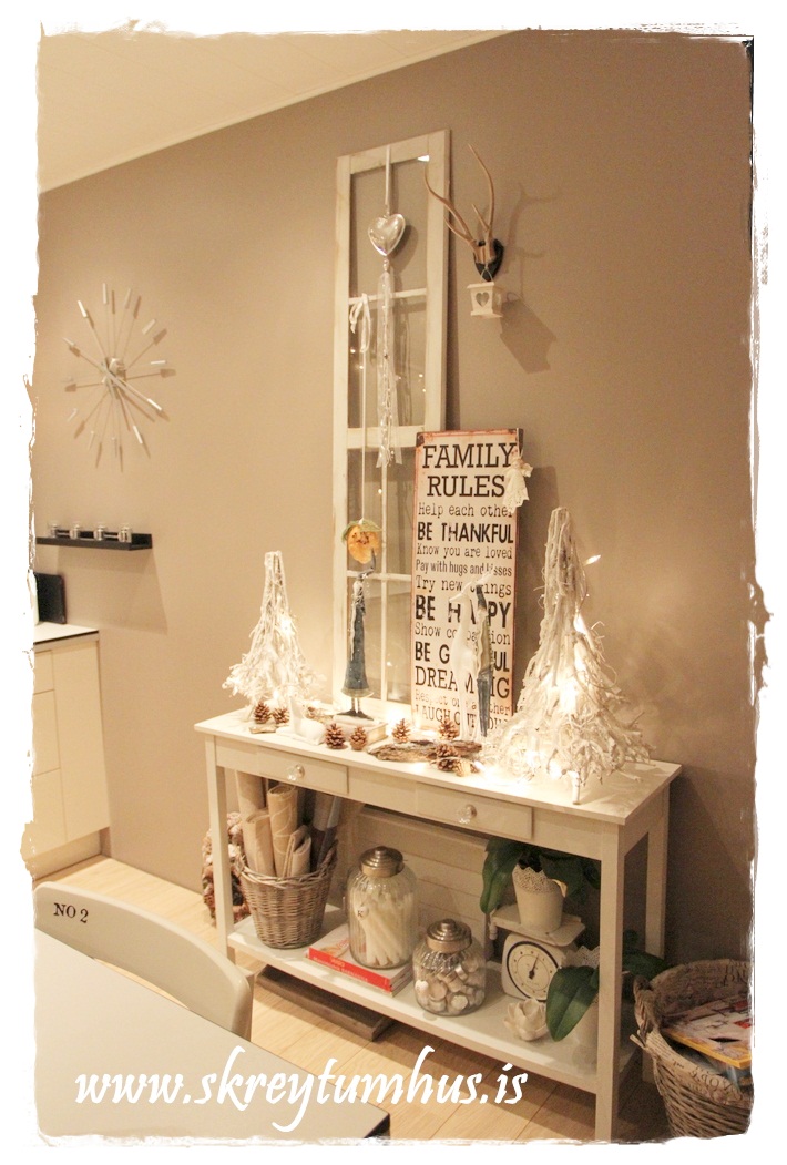 …ég var áður búin að setja sama skrautið upp á borðinu á ganginum, því sama og þið sáuð í gær, en mér fannst þetta ekki ganga upp þar – fannst of mikið að gerast á borðinu…