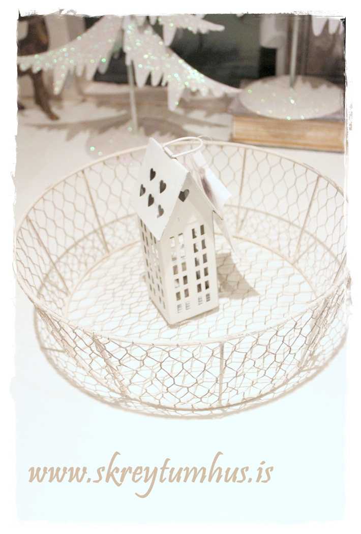 …þessi fallega vírkarfa og lítið kertahús (þau voru til í alls konar útfærslum, æðisleg!)