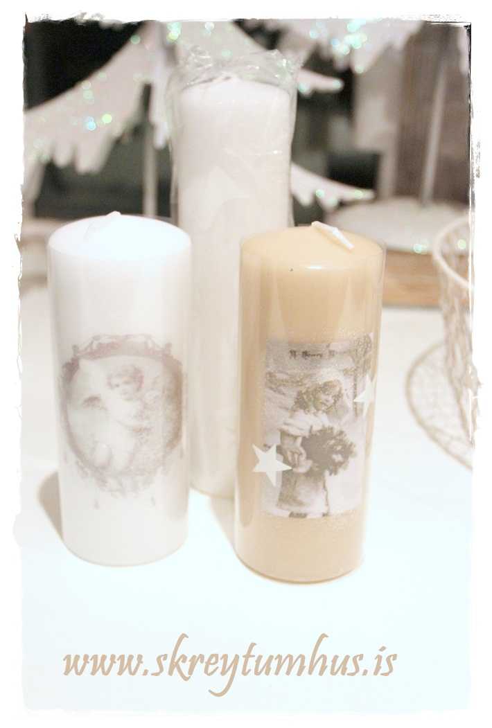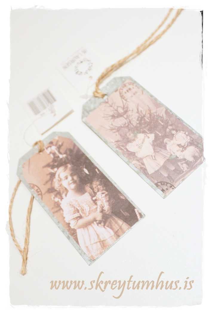 …fallegt lítið statíf fyrir sprittkerti og sætar gamaldagsmyndir á zinkspjöldum…