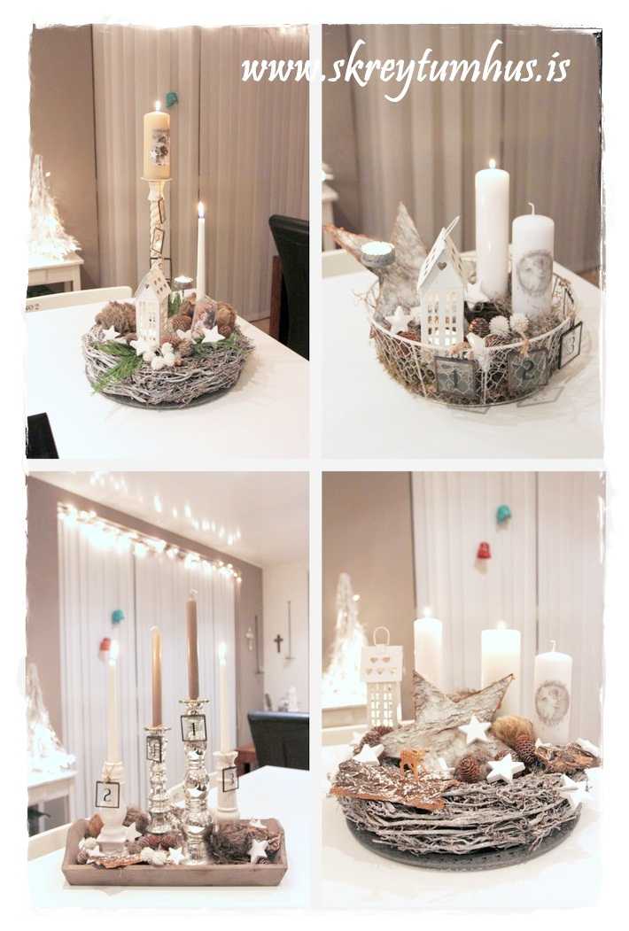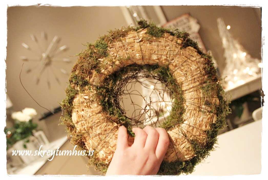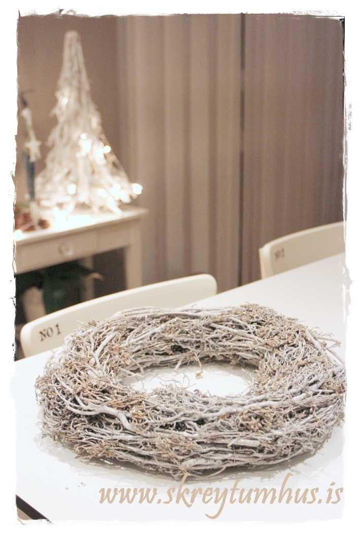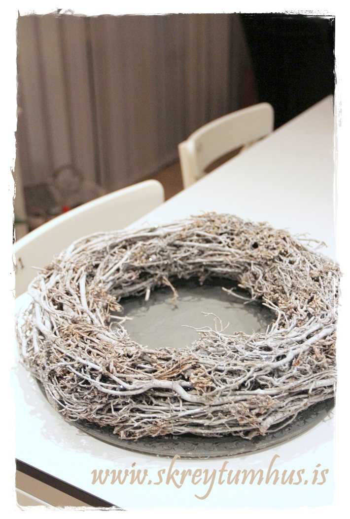 En hey!  Hvað er ég að röfla, þið njótið góðs af því hvað ég er vitlaus, því að ég ákvað að nota efnið sem ég fann og útbúa mér 4 mismunandi “kransa” fyrir aðventuna………. þannig að bara vonandi fáið þið einhverjar góðar hugmyndir af þessu tilfæringum mínum!