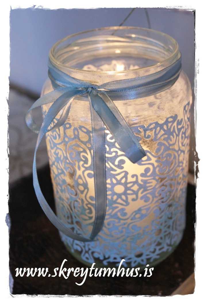 …”blúndupappír notaður í krukkur – væri líka flottur utan um kerti,,,