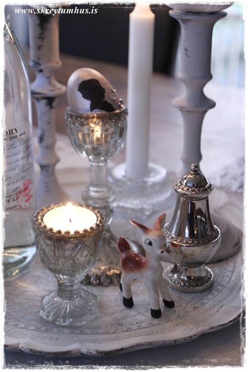 …lítið silfurkar frá mömmu fær að standa á borðinu með öllu hinu…