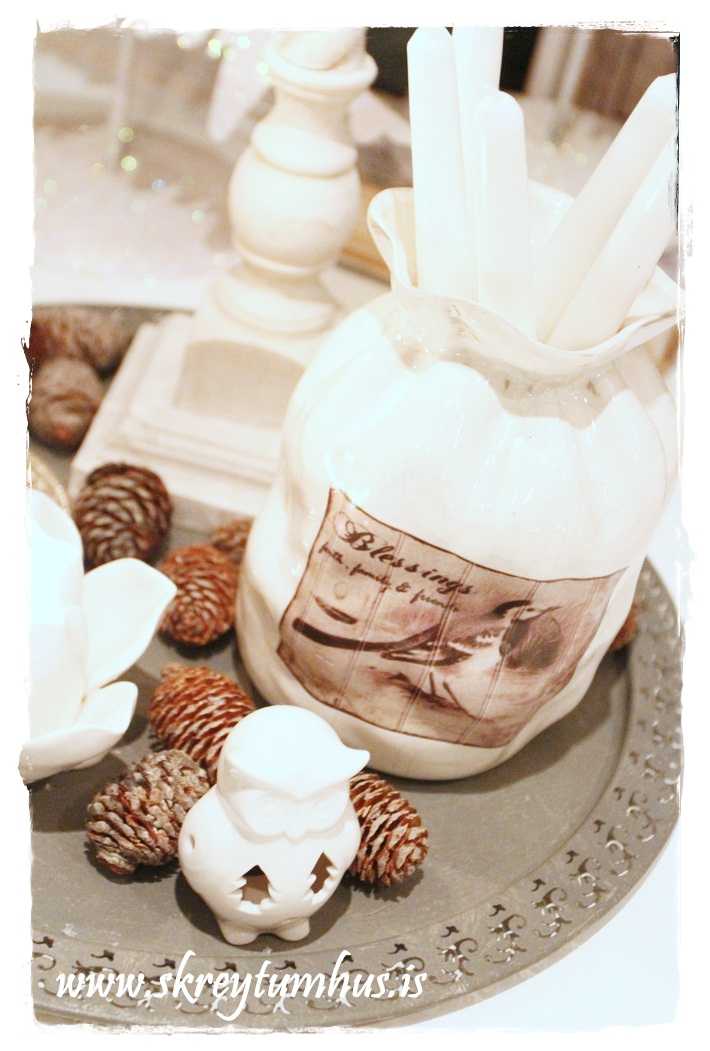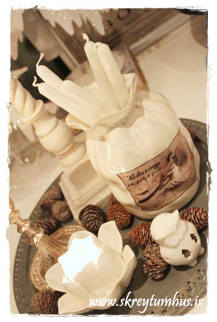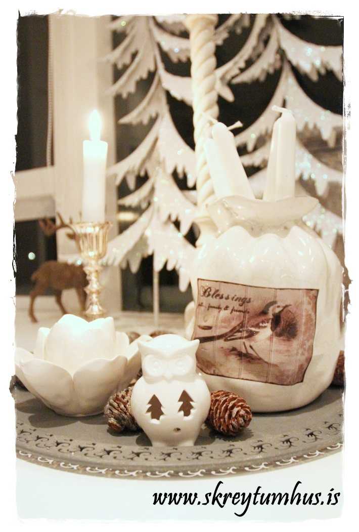 Mikið ofsalega er þetta fallegt hjá þér eins og alltaf.Langar í hreindýrin,fuglakrúsina og kertastjakann fyrir kubbakertið sem þú ert með á neðstu myndinni 🙂