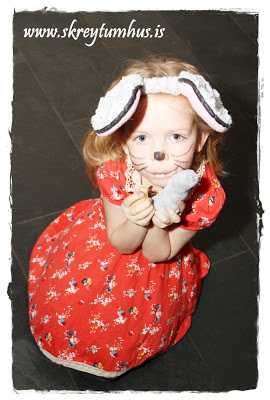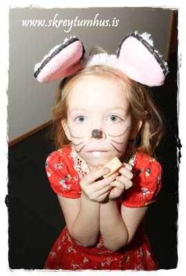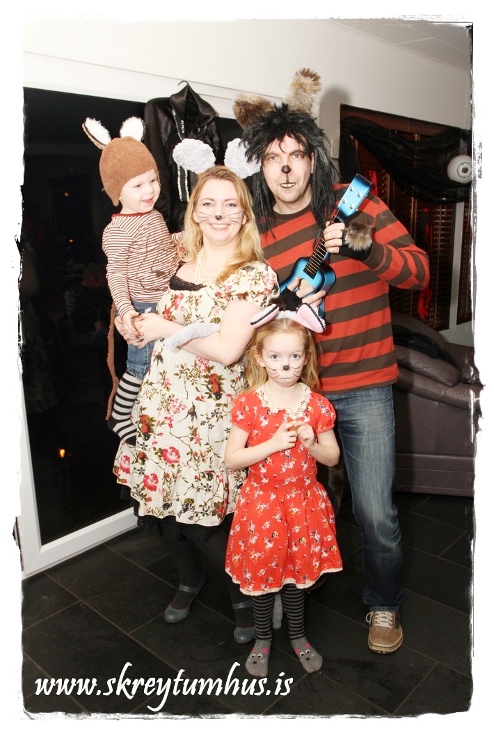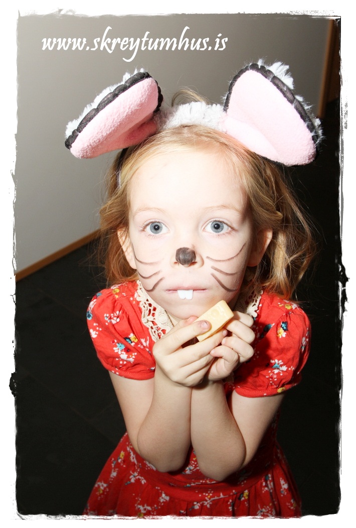 Ég reyndi að finna músaeyru og önnur gervi en það gekk lítið.  Síðan fór ég á Ebay og ætlaði að panta, en var alltaf að fresta því.  Að lokum ákvað ég að útbúa bara búningana á famelíuna.