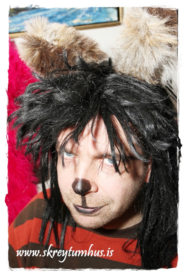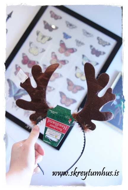 Ég keypti loðin efni í Virku, 10cm fyrir úlfinn og 15cm í grá eyru og skott.  Síðan fór ég í Megastore og keypti þar tvenn svona úber smart eyrnaskjól sem að maður setur utan um hálsinn, 2 x brúnar húfur og tvö hreindýrahorn.  Samtals fyrir þetta allt saman ca 4þús.