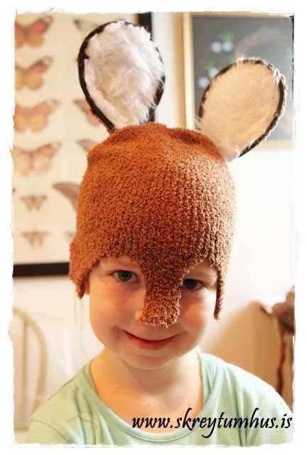 …ég tók aðra húfuna og klippti hana niður í ræmu til þess að útbúa skottið á Lilla Klifurmús…