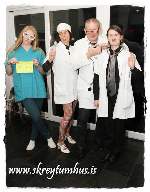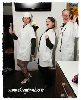 Ekkert smá skemmtilegt!! Hló upphátt af dr. Saxa og félögum! Þið eruð greinilega með góðan húmor 🙂 Allir í frábærum búningum og þú ótrúlega klár að redda búningum á familíuna!