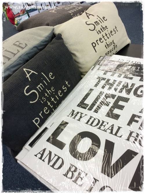 Búin í Rúmfó, og allt fallegt þar. Náði að vísu að lenda ansi vel á milli, með því að fara og kaupa í matinn, sem mér finnst svo leiðinlegt – en við verðum víst að borða *dæææs*!