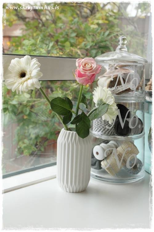 Svakalega fallegt …. Maður má alveg taka þig til fyrirmyndar með blómin það leggst svo á sálina að sjá öll laufin falla búhú.. 🙁 Ég fór samt i rúmfó á Akureyri í gær og sá ekkert af þessu dýrindis góssi. Annars hefði ég örugglega keypt svona 12 svona vasa svo það er kannski bara ágætt… 😀