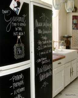 Sniðug hugmynd… 05.11.2012 …til þess að fegra gamla ísskápa – nú eða bara að nýta plássið betur 🙂 Fyrir: …og eftir smá krítarmálningu… …bara kúl… …þetta finnst mér ferlega sniðugt 🙂 …og kemur bara flott út! http://villahonkasalo.blogspot.com Myndir og hugmynd héðan. Share Þú gætir einnig haft áhuga á:Hárspangastandur...Sitt lítið af hverju...Kitchen Aid - DIY...