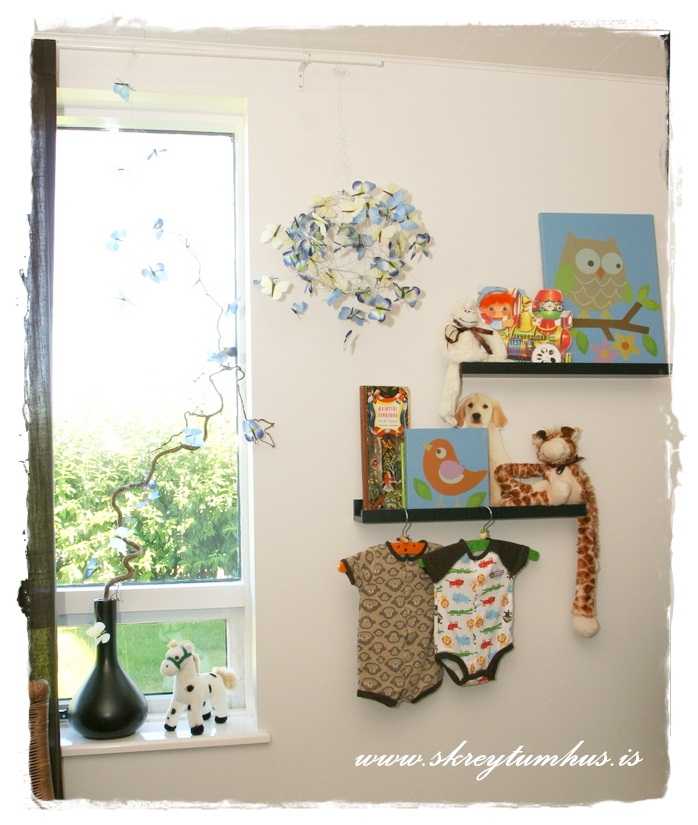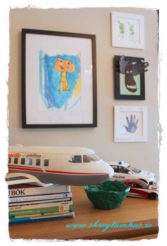 Þar með er komið að verkefni dagsins, ég er að vinna í herbergi litla mannsins.