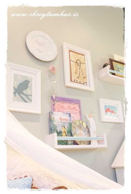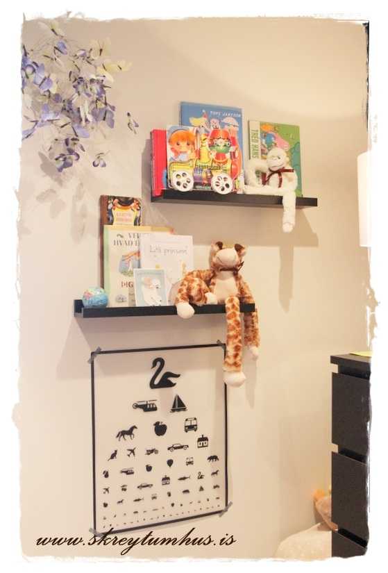 …og Ribba-hillur úr Ikea og bækurnar sjálfar sem skraut…