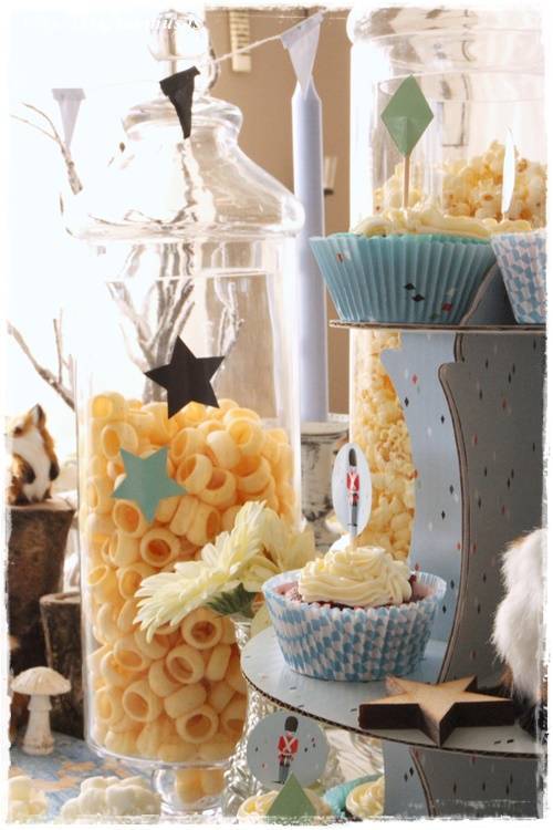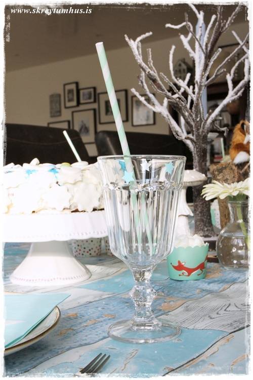 …krukkurnar keypti ég í sumar í Borð fyrir tvo og hafa þær staðið inni á baði. En ég ákvað að leyfa þeim að koma fram og vera með í veislunni, greyjið krúttin. Smá stjörnulímmiðar á og allir glaðir…