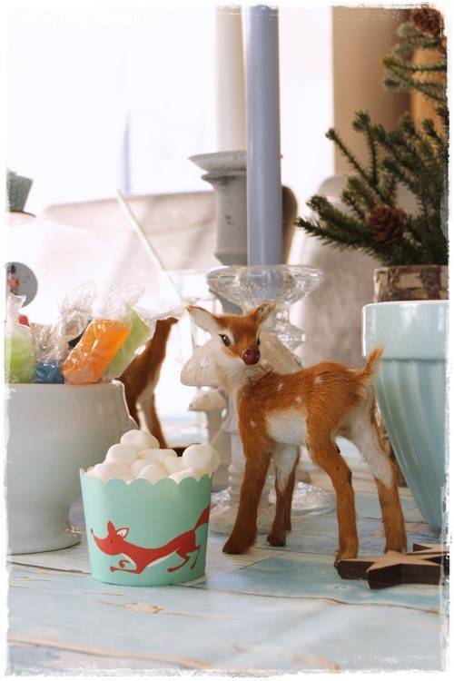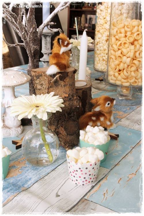 …þessi litlu pappaform koma úr Söstrene líka, og kostuðu held ég um 170kr fyrir 6stk. Bráðsniðugt til þess að setja smá nammi í, mini sykurpúða (eins og ég var með), eða bara smá snakk. Ódýr og skemmtileg leið til þess að setja smá dúllerí og lit á borðið í leiðinni…