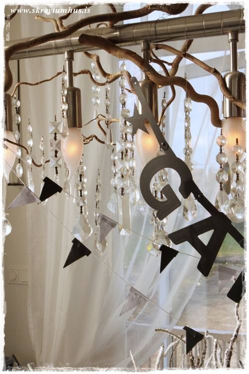 …litlu fánalengjurnar eru úr Söstrene, kosta um 170kr líka – að mig minnir. Stafaborðinn er hins vegar frá merkinu Omm og fæst í m.a. í Mjólkurbúinu…