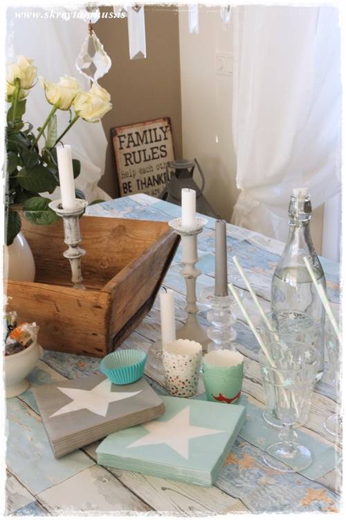 …stjörnulímmiðarnir eru líka úr Söstrene, og ég átti þá hérna heima. Fannst skemmtilegt að setja þá á glerkrukkurnar, svona til þess að skreyta þær fyrir tilefnið 🙂