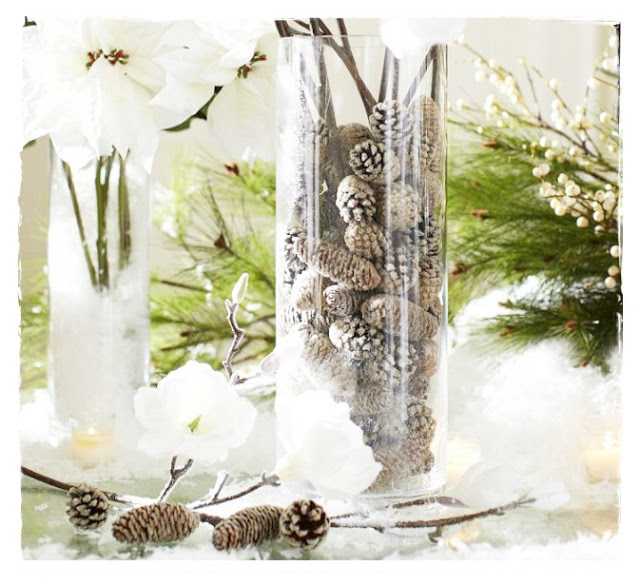 …elska þetta, og hef gert svona í mörg ár – könglar í vasa með gervisnjó = jóóóló…