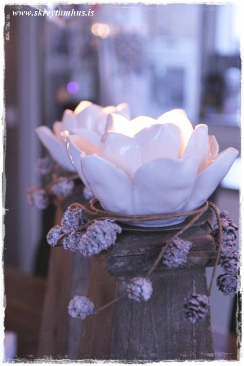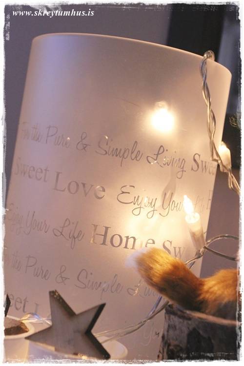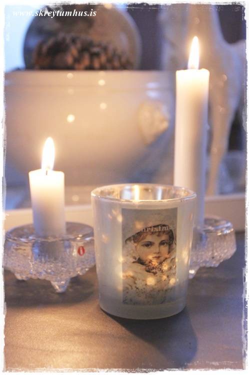 Svoooo huggulegt hjá þér……….. litlu kertaglösin með skuggamyndunum………… hvar fékkst þau ? Yndislegt……..ég er farin út að ná mér í greinar 🙂