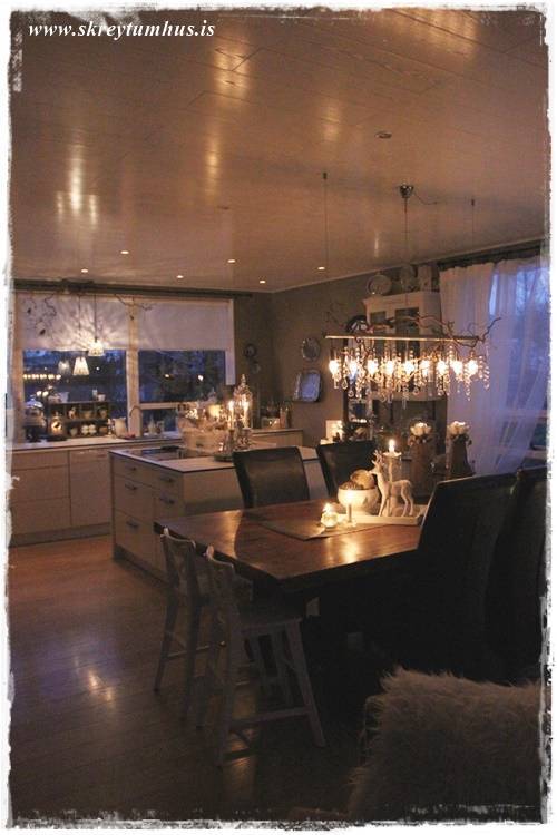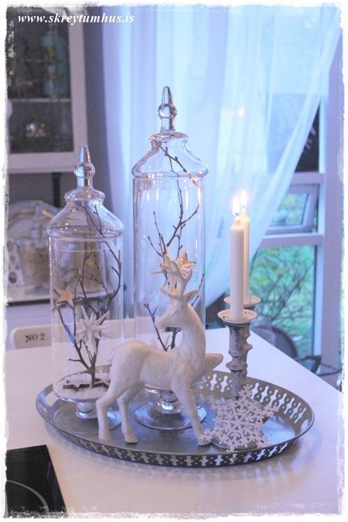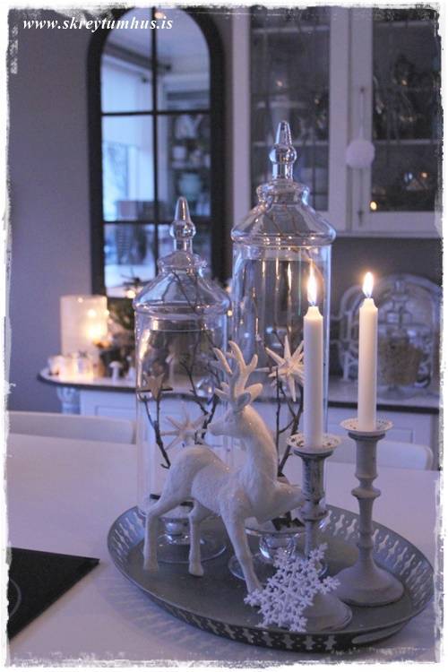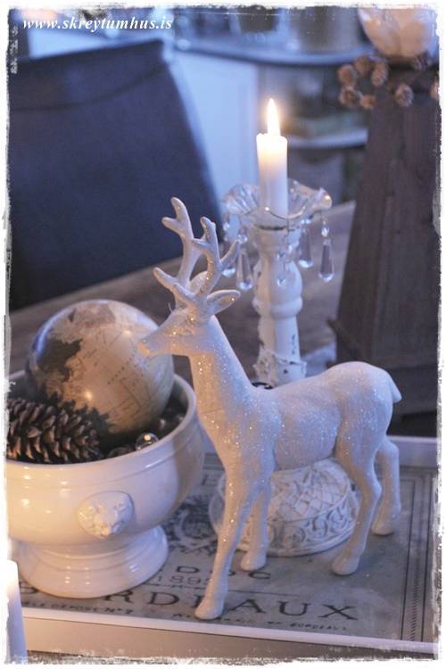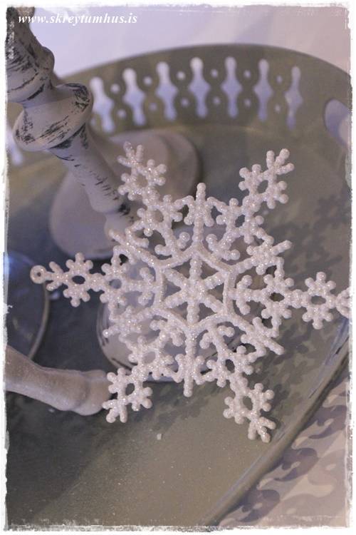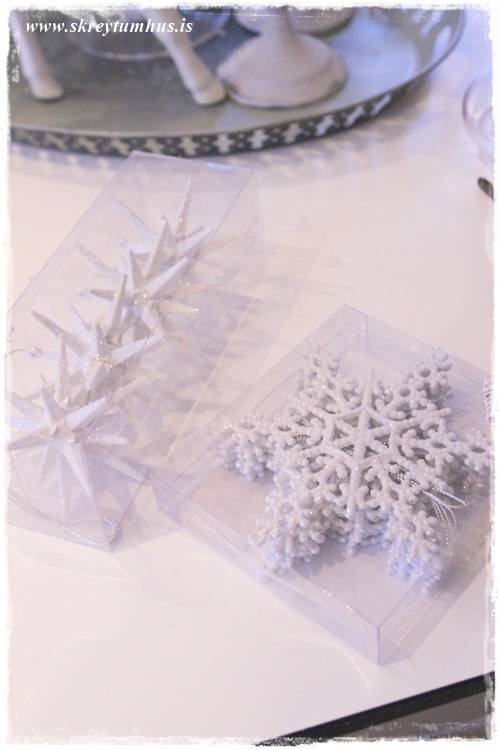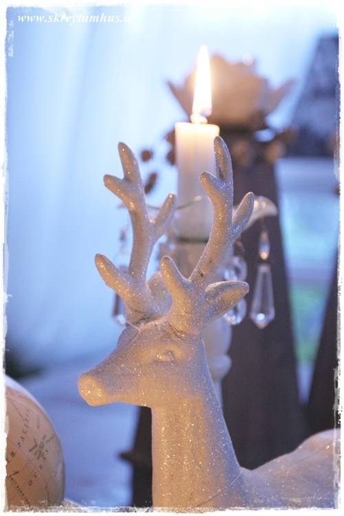 …þessi hvítu, glitrandi vetrarskraut komu líka með mér heim úr Rúmfó (með hreindýrunum)…