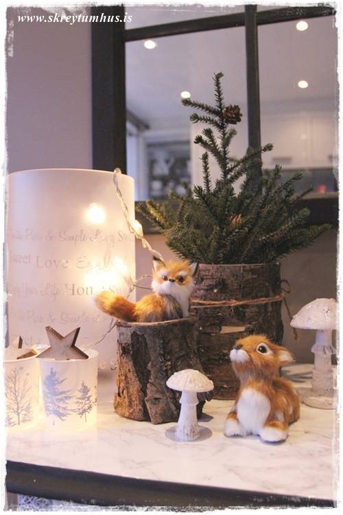 …já ok, og kannski eitt glitrandi hreindýr – haha…þetta er alveg að falla saman, þessi vetrarskreytingarkenning mín…