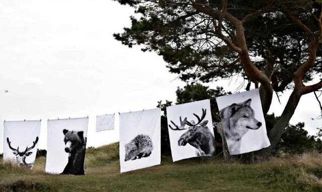 …en hins vegar eru þessu viskustykki frá By Nord, og sniðugt er fyrir þá sem hafa kannski ekki ráð á að fá sér marga svona púða – en kaupa viskustykkin og sauma sér púða með myndinni framan á…