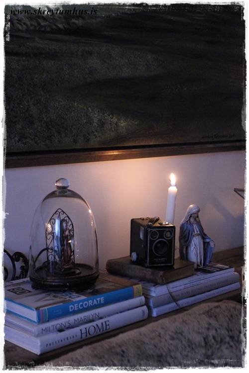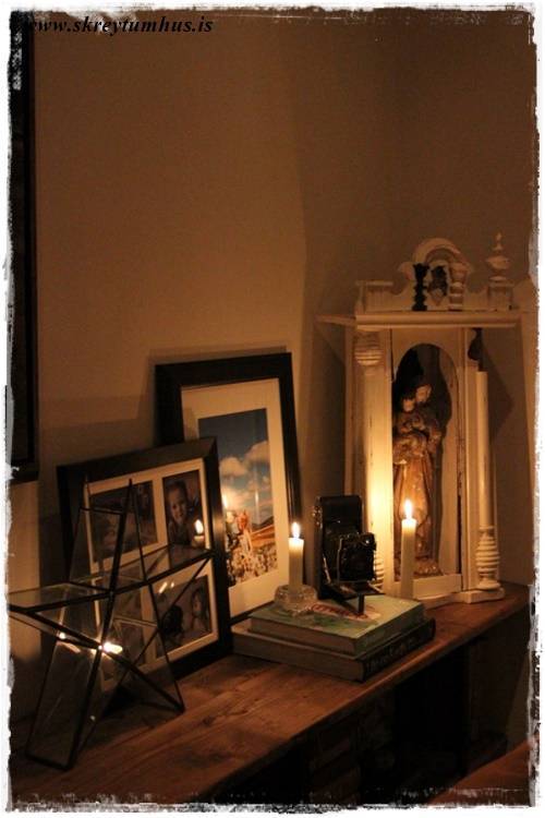 …svo þegar rökkrið rennur yfir þá er ró á hillunni, kertaljósið lýsir upp alla hlutina sem mér þykir vænt um – og hvað er hægt að biðja um meira?