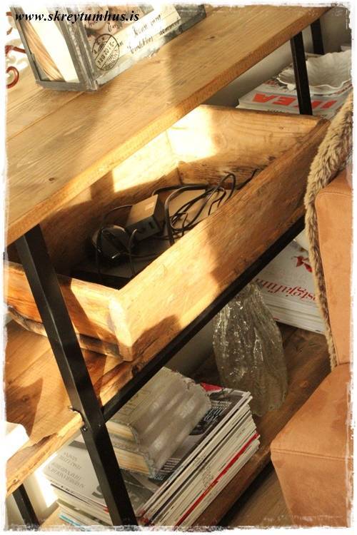 Þetta er æði hjá ykkur. Enn má ég spyrja hvernig þið meðhöndluðuð timbrið í hillunum?