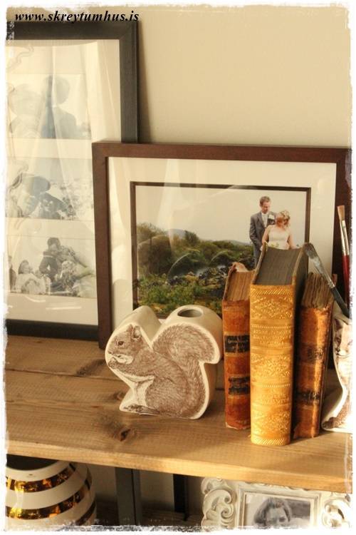 Ég t.d. elska svona gamlar bækur, mér finnst þær algjörlega dásamlegar. Ekki er síðra að geta síðan stillt upp alls konar smálegu og krúttaralegu með þeim…