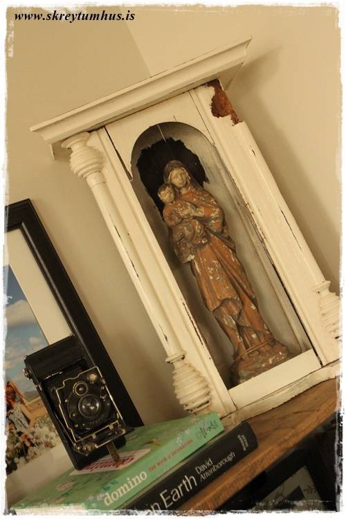 …öll brotin fylgdu með, en ég vildi ekki líma hana. Ég prufaði bara að setja þessa dásemdar Maríustyttu, með hann Jesú litla í fanginu, innan í þessa gömlu klukku og la voila…