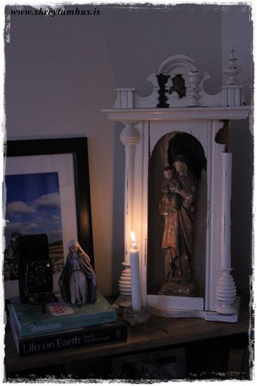 Yndislegu hillur, er ekki frá því að langarinn hafi fundið nýtt hámark við að sjá þær 🙂 Er líka afskaplega forvitin um hvar þú fékkst fallegu glerstjörnuna sem er þarna rétt hjá Maríunni þinni, hún er algjör dásemd 🙂