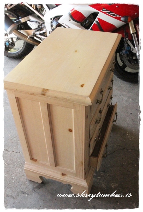 …Þar sem að ég reiddi framm 2500 kr fyrir gripinn.  Not too shabby for Rachel, fyrir gegnheila viðarkommóðu…