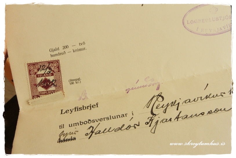 …og í því var leyfisbréf frá Lögreglustjóranum í Rvk fyrir verslun, dagsett 12 maí 1932..