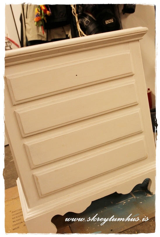 …ég málaði fyrstu umferð, sem er alltaf skemmtilegust.  Eins og sést þá var ég ekki búin að fylla upp í götin eftir upprunalegu höldurnar, en ég bara gat ekki beðið…